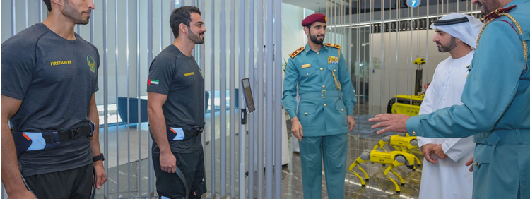 En una visita reciente de Su Alteza el Jeque Hamdan Bin Mohammed Bin Rashid Al Maktoum, la Defensa Civil de Dubái mostró sus tecnologías de rescate de última generació. Entre ellas estaba el Hypershell X Carbon. Los bomberos explicaron cómo les ayuda durante operaciones largas que implican subir escaleras, cargar equipo pesado y mantener la concentración a pesar del calor y el agotamiento.